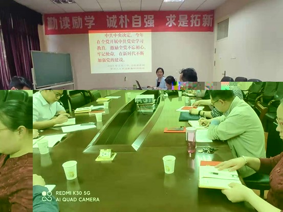 首先,支部開展了精讀精講活動,馬克思主義學院副院長李恺為支部黨員講授《學黨史 守黨紀 悟初心 用鐵的紀律管黨治黨》黨課。李恺結合黨史系統闡述了黨的政治紀律和黨的紀檢機關發展史,以史為鑒,深刻闡明了黨的政治紀律的重要性,進一步剖析了在新的國際國内環境下,加強黨的紀律教育是加強黨的紀律建設的基礎,強化紀律執行是黨的紀律建設的價值體現。黨員們就支部紀律建設,與李恺教授進行了交流和讨論。
